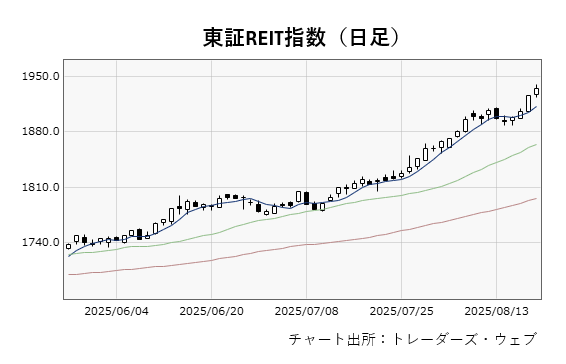 REIT指数は8月に入り、節目の1900pを超えてきました。8月7日の取引時間中に1900pを上回ると、2営業日後の12日には終値でも上回りました。