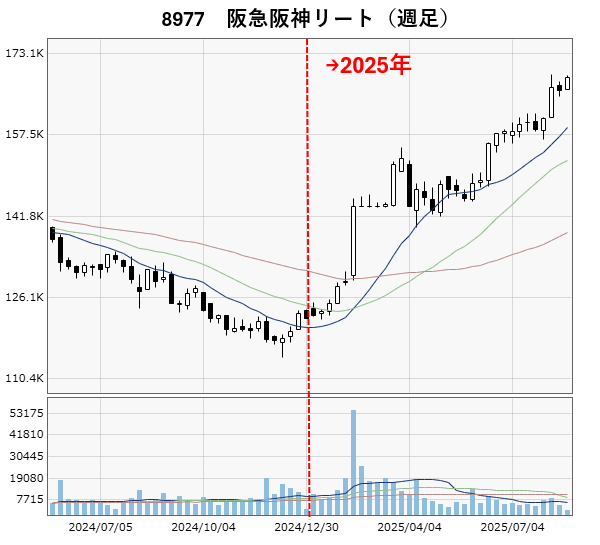 REITに対する注目度が低い状況下では、地方の物件を抱えるREITは選好されづらくなります。しかし、REITに対する注目度が高まってくると、相対的な分配金利回りの高さが魅力的に映りますし、エリア分散という点からも買われる要素が出てきます。関西圏に強みを持っている阪急阪神リートに関しては、大阪万博の開催も追い風になっていると考えられます。