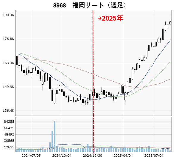 東京以外のエリアに強みを持つREITも強い動きを見せています。阪急阪神リート投資法人(8977)は、同じ期間の上昇率が+39.2%、福岡リート投資法人(8968)は+28.7%となっています。