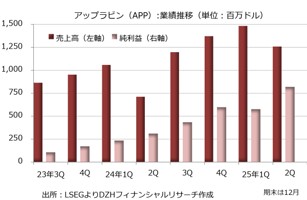 業績は好調で、2025年4-6月期の売上高は前年同期比77%増の12億5900万ドル、純利益は164%増の8億2000万ドルです。2025年1-3月期は売上高が前年同期比40%増の14億8400万ドル、純利益が144%増の5億7600万ドルでした。依然として急成長が続いています。