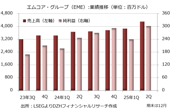 トランプ政権はAI覇権の掌握に向けて米国内でのデータセンター建設を推進しています。製造業の復権も掲げ、工場の新設にも積極的です。エムコア・グループにとって目先では政策面の追い風が吹いていると言えそうです。