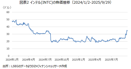 さらに、9月下旬にはアップルによるインテルへの投資案件で両社が協議を開始したとブルームバーグが報道したことで株価は騰勢を強めました。