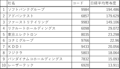 すべての日でランクインしていたのは、ファーストリテイリング、ソフトバンクグループ、東京エレクトロンの3社です。その他ではアドバンテスト、リクルートホールディングス、フジクラのランクインが目立ちました。