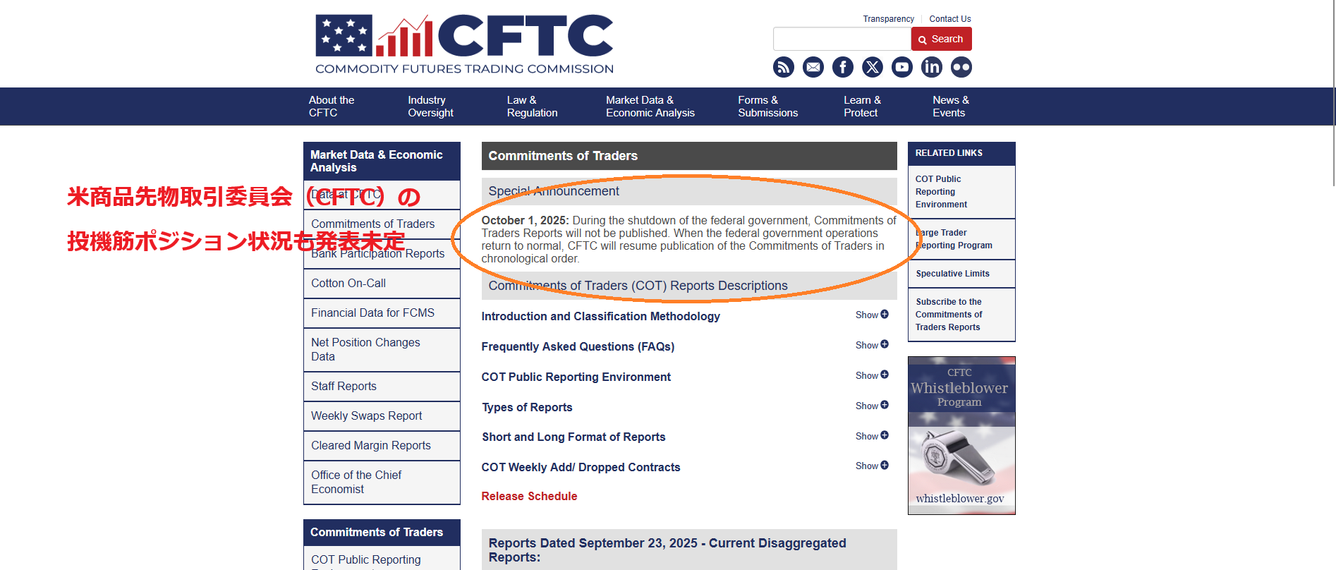CFTCは政府閉鎖が解除され、業務が正常に戻り次第、列順公表するとしています。