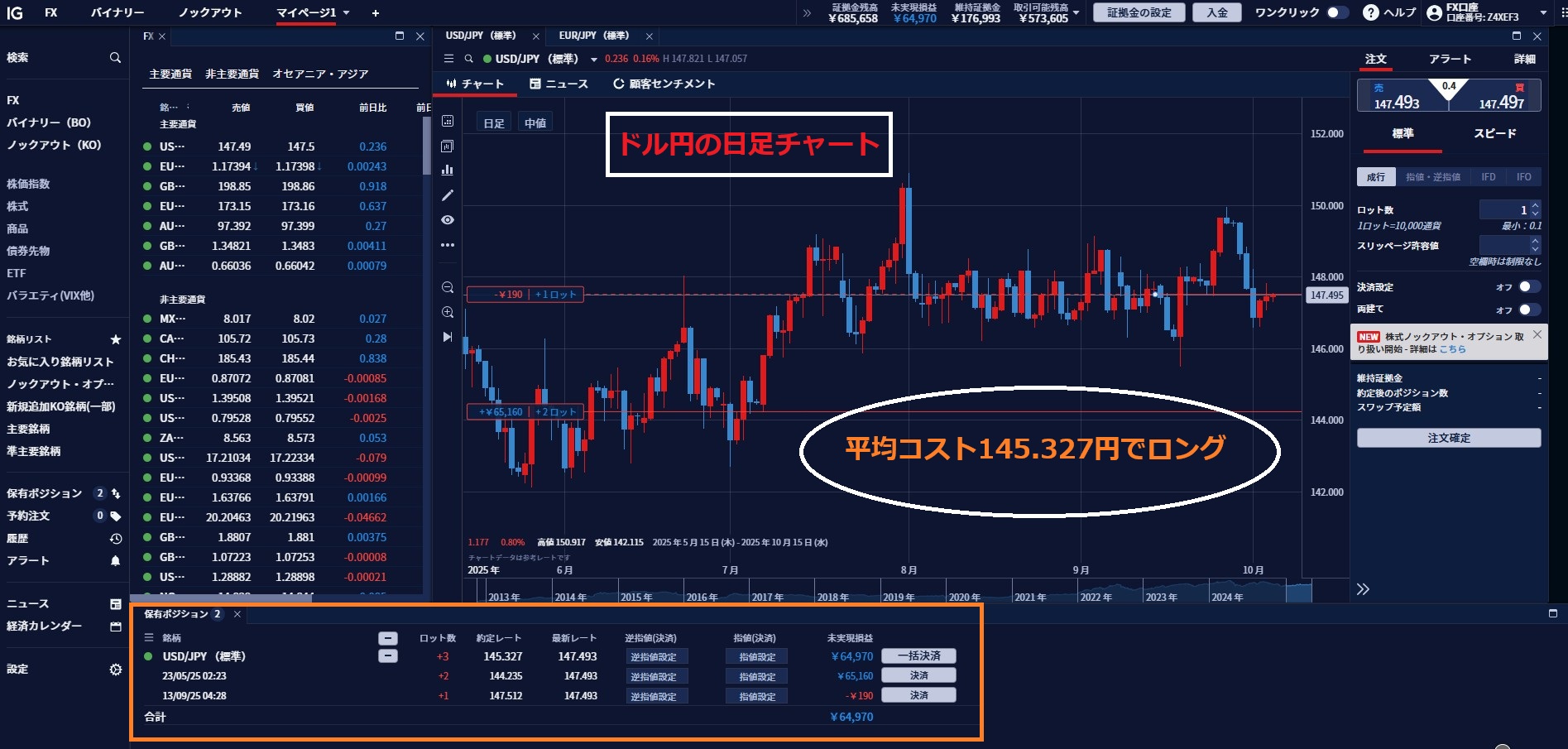 現在のポジション、ドル円ロング@145.327円を維持しながら、個人的には高市早苗前経済安保担当相の「サナエノミクス」「ジャパン・イズ・バック」を信じて、上サイド突破を期待&ポジションを維持したいと思います。