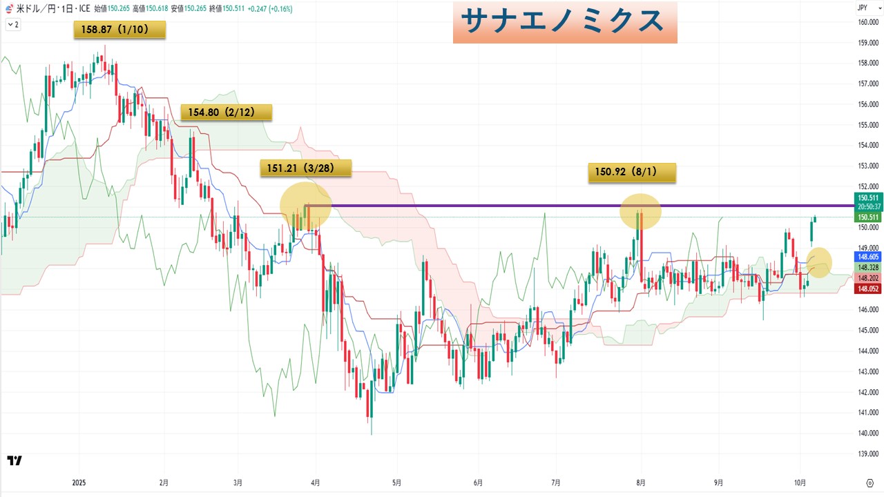 するとドル円は一気に151.17円まで売り込まれて安値引けとなりました。