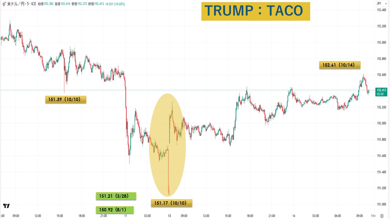 ただ、週明けのアジア市場では逆にトランプ米大統領がTACO発言!!