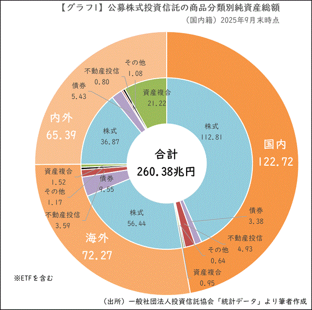 2025年9月末の投信残高は約277兆円、うち株式投信は約260兆円