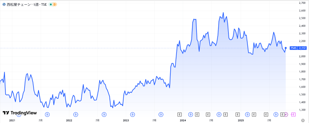 同社の株価は、2024年の後半から業績が好調で急上昇しています。