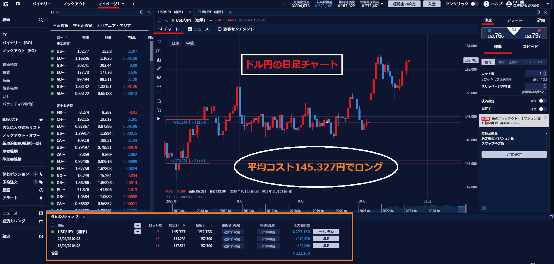 当コラムでは「IG証券」のデモ口座で株価指数・FX・コモディティなどをトレードし、売買のタイミングや結果などを公開。証拠金は各100万円スタート。「IG証券」は「FX口座」「株価指数口座」「商品口座」「個別株口座」「債券先物口座」「その他口座」と多様な資産クラスがワンストップで提供されています。
