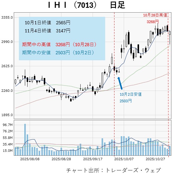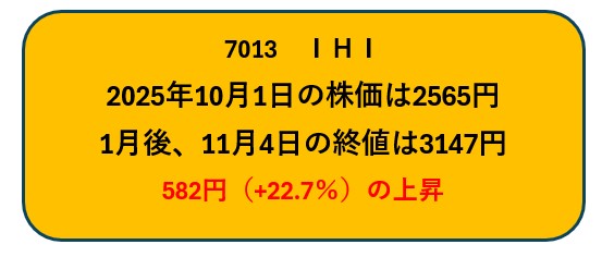 今回は2025年10月に取り上げたIHIの値動きを振り返ります。