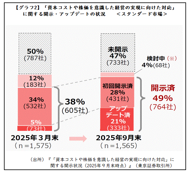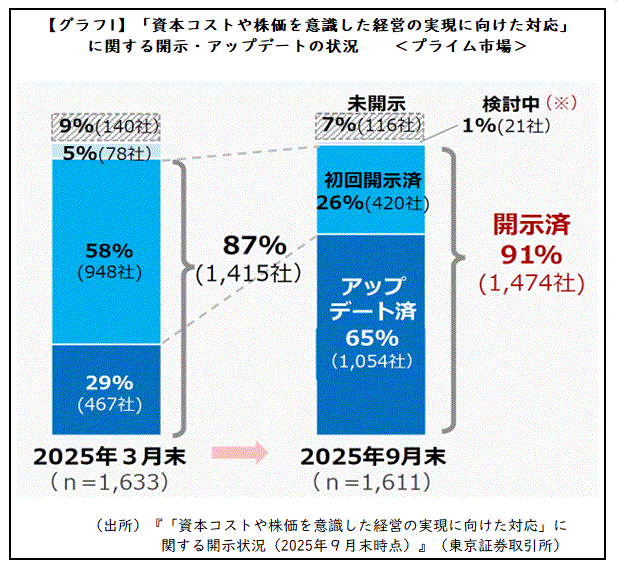 ●東京証券取引所上場部『「資本コストや株価を意識した経営の実現に向けた対応」に関する開示状況(2025年9月末時点)』