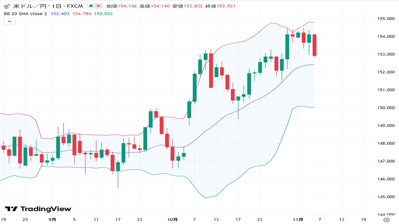今回については、時間足の動きが日足までつながらなかったため、欲張らずに153円台前半で一部だけでも利益確定できていれば、と思いました。