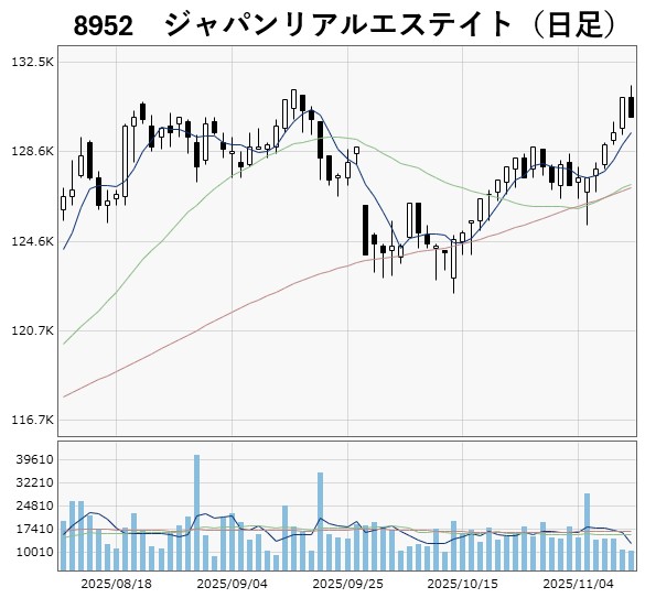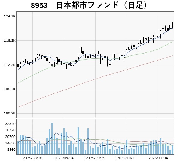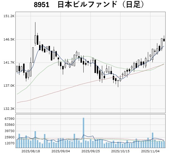 日本都市ファンドは10月以降は上昇基調を強めており、ジャパンリアルエステイトは11月12日に9月の高値を上回り、年初来高値を更新しました。日本ビルファンドも8月につけた今年の高値に接近しています。