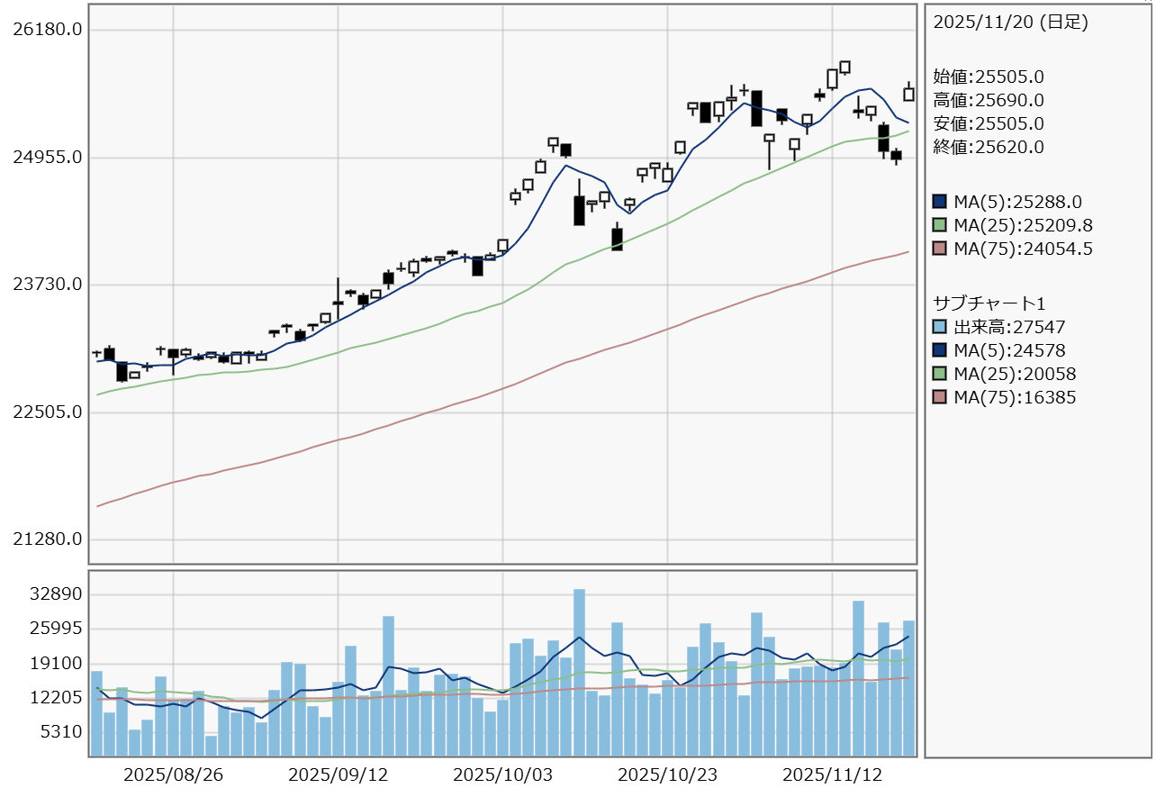投資の手法に「押し目買い」という手法があります。高値が継続するチャートが一時的に下落したところで買いを入れる手法です。今回エヌビディアの株、またはオルカンが一時的に下落するとしたら、まさにこの押し目買いのチャンスでした。筆者は月に50本を超える個別相談を受任しておりますが、今日は朝から押し目買いの説明を何回するのだろう、と構えて迎えた朝でした。今のところ、お客さま各位の評価額は引き続き堅調で、1人として押し目買いの説明をしておりません。