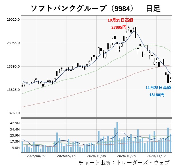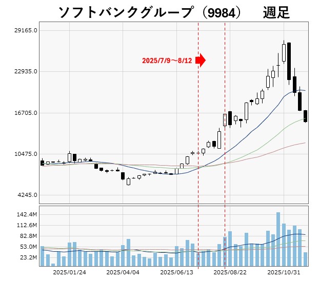 ソフトバンクグループの風向きが悪くなったのは、上期決算を発表した11月11日辺りからです。