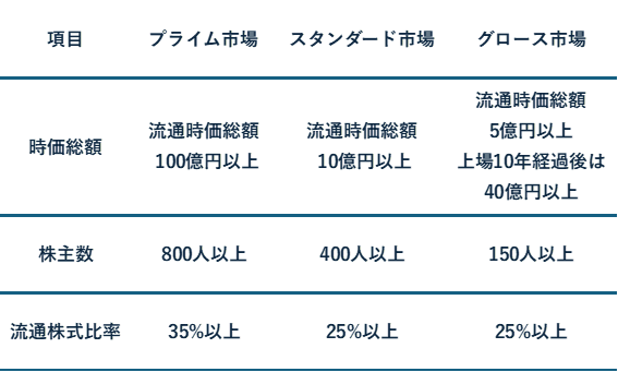 上の図は各市場の上場維持基準です。東証では市場改革が進められており、過去に比べて上場を維持するための条件が厳しくなりました。今後も見直しが図られる見通しであり、新陳代謝を促すため基準が緩くなることはおそらくないでしょう。