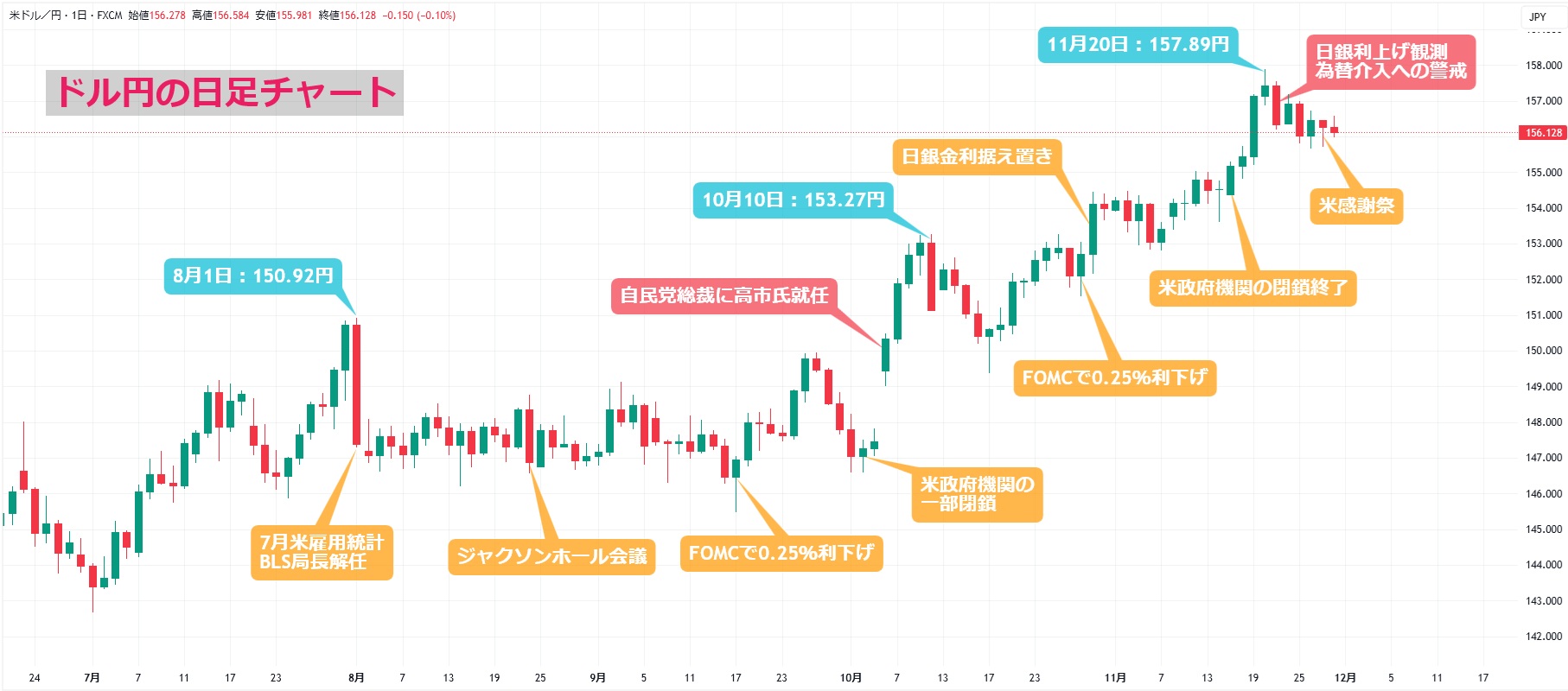 とはいえ、今週は「米感謝祭ウィーク」。市場参加者が少なく流動性が低下し、商いは低調となりました。27日は米国が感謝祭で休場。28日は米感謝祭翌日で米債券・株式・商品市場が短縮取引となりました。市場参加者が本格的に戻るのは来週明けになるとみられ、為替市場でも積極的に持ち高を傾ける動きは限られています。