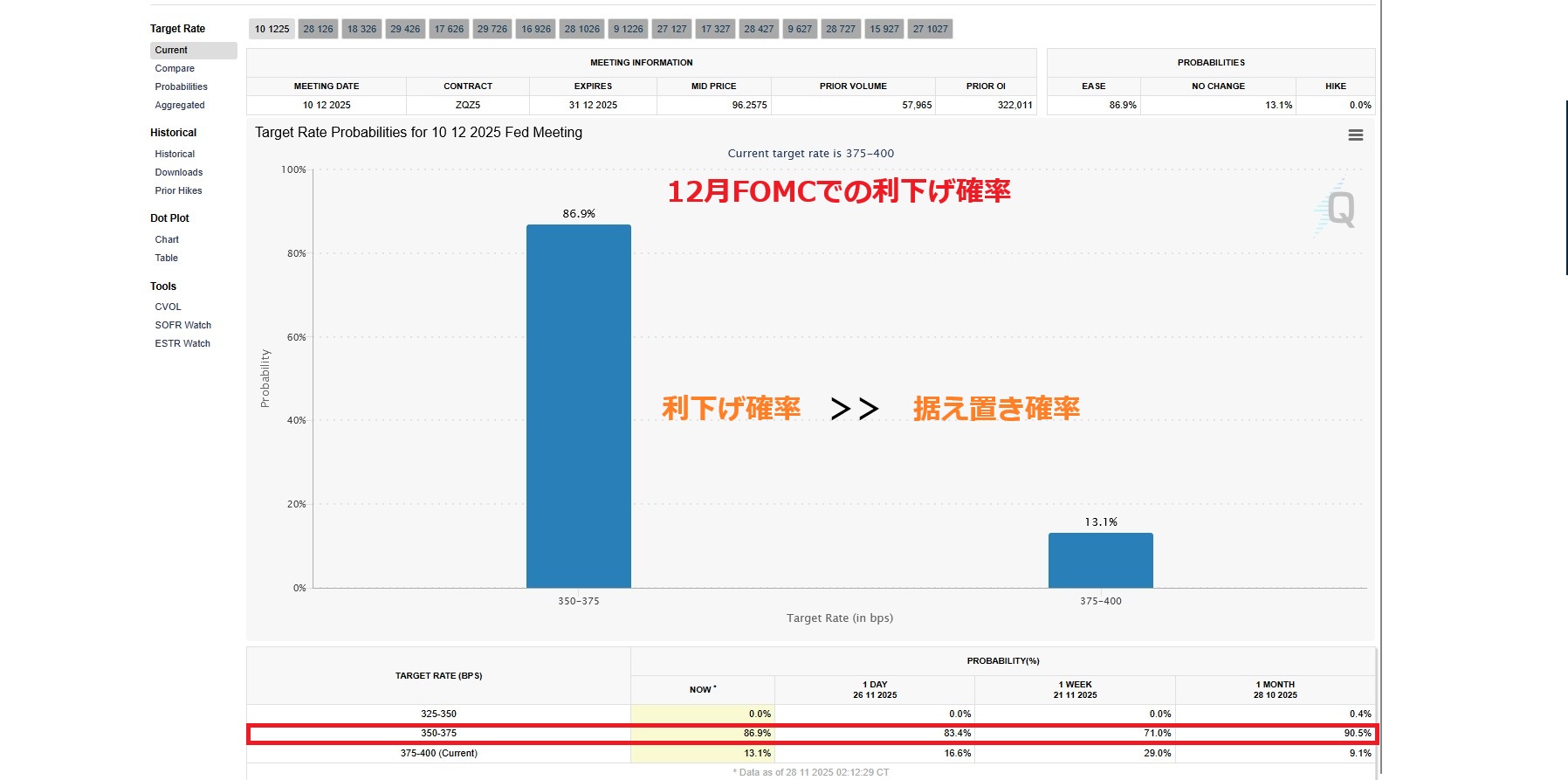 米利下げ確率、86.9%に上昇