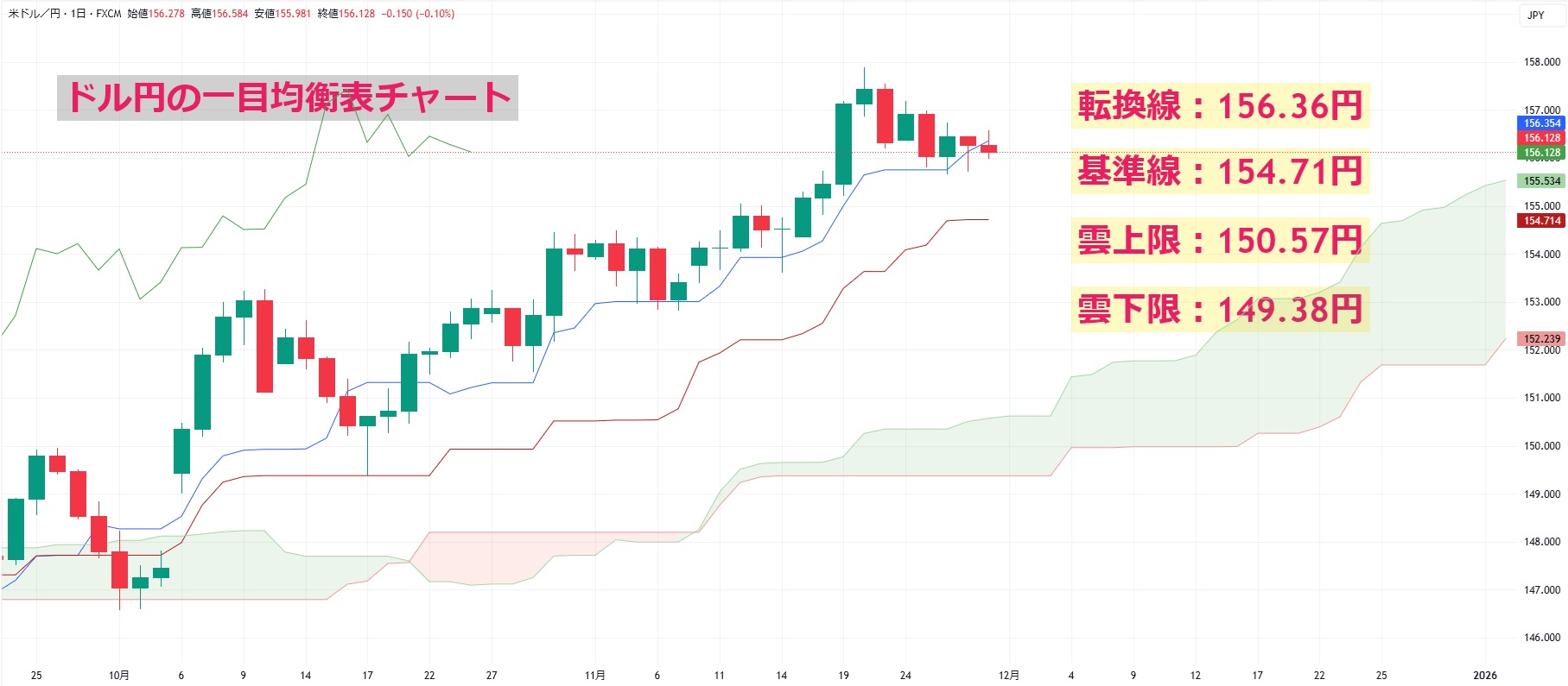 ドル円の一目均衡表チャートを見ると