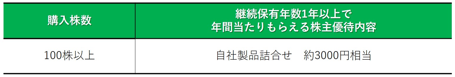 2025年12月末の権利確定日から、継続保有年数の条件が追加される改悪となりました。つまり、今回の株主優待を受け取ることができるのは、2024年12月末の権利確定日から継続して株式を保有している株主になります。