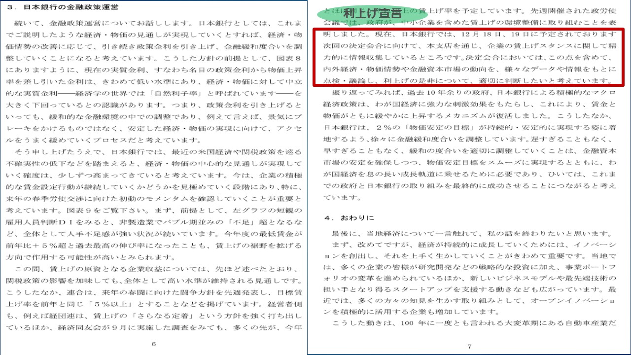 「現在、日本銀行では、12 月18 日、19 日に予定されております次回の決定会合