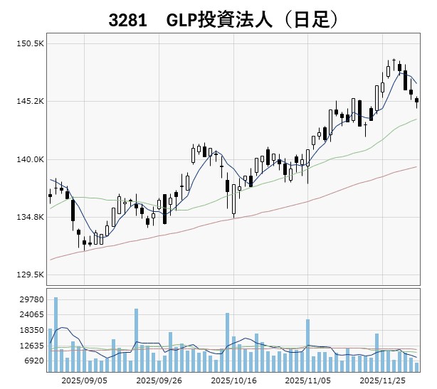 属性では、11月は物流系REITの上昇が目立ちました。物流大手のGLP(3281)は月間で5.9%上昇しており、こちらも11月に年初来高値を更新しています。