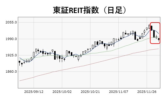 2025年はREIT指数だけでなく日経平均も非常に強い動きを見せています。ただ、日経平均の方はこれまで上昇をけん引していた大型ハイテク株が調整売りに押されており、11月は月間で4.1%安と大きく下落しました。