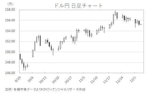 先月25日、「ハセット米国家経済会議(NEC)委員長が次期米連邦準備理事会(FRB)議長人事の最有力候補」との報道が伝わって以降、ドル相場は重い動きが続いています(図表参照)。12月3日にはトランプ米大統領が「次期FRB議長は来年早々に発表」と発言して決定が間近に迫っていることを示唆。ハト派(金融緩和派)とされる「ハセット次期FRB議長候補」の議長就任を見据えたドル売りの思惑が高まっています。