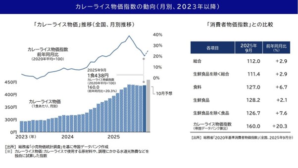 画像引用元:「カレーライス物価指数」調査―2025 年 9 月分|帝国データバンク