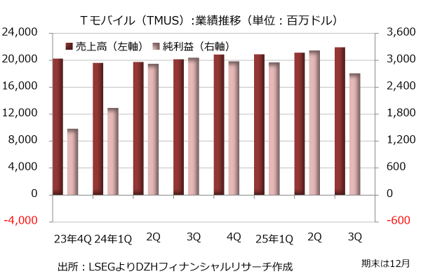 大型のM&Aで特筆すべきは何と言って業界4位だった通信会社、スプリントとの統合です。2020年の統合時には業界3位だったTモバイルは一気に上位2社との間合いを詰めています。さらに2024年には格安携帯電話サービスのミント・モバイルと国際電話に強みを持つウルトラ・モバイルを買収。同年には米国5位のUSセルラーを44億ドルで買収すると発表しており、2025年8月に買収を完了したと明らかにしています。