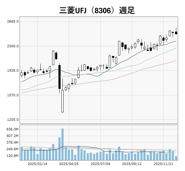 こちらは三菱UFJの週足チャートとなります。