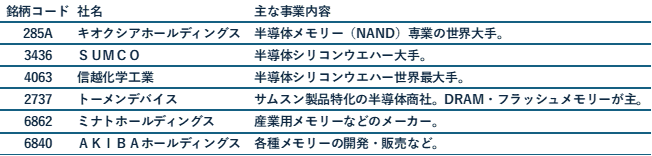 ということで、メモリー需要の拡大により恩恵がありそうな企業を探ってみると、メモリーメーカーや商社などに期待ができそうです。