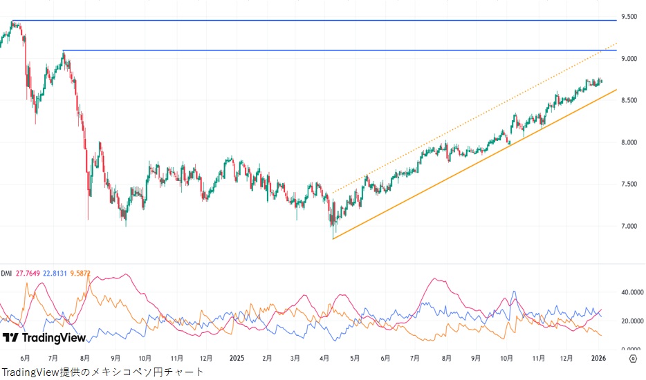 メキシコペソ円の週足分析:明確な上昇基調が継続