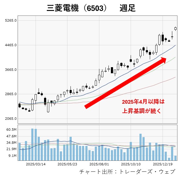 まずは、三菱電機のチャートを確認してみましょう。