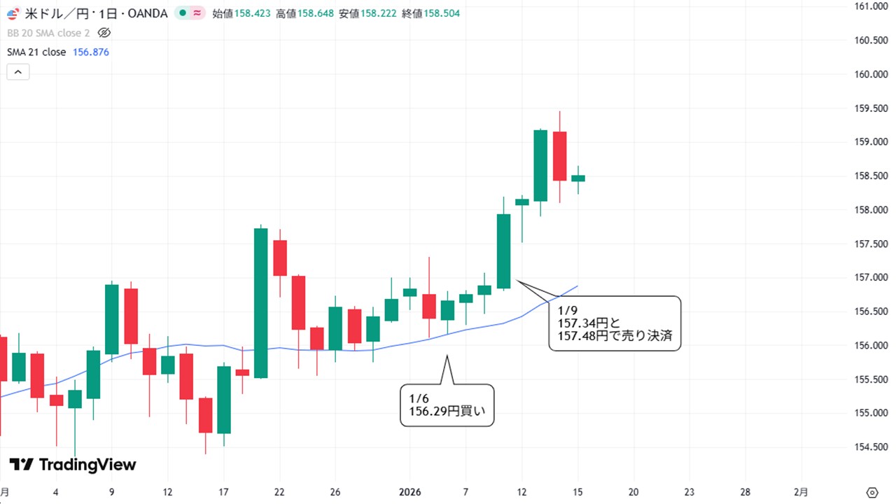正直に申しますと、昨年後半から調子が今一つ冴えないことや、年初はマイナスでスタートしていたのでプラスにもっていきたいとの気持ちもあり、部分決済することにしました。それ以外では、NY時間に米12月雇用統計の発表が予定されており、悪い結果で含み益が含み損に変えるのは避けたいという気持ちも、部分決済を後押ししました。
