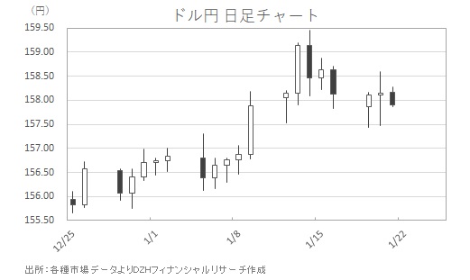 トランプ米大統領は17日、グリーンランドを巡って欧州8カ国に追加関税を課すと発表しました。週明けの東京マーケットではリスク回避の動きが先行し、ドル円は一時157.43円まで下落しました(図表参照)。