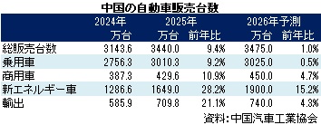 中国汽車工業会は15日発表した分析レポートのなかで、2026年の自動車販売台数の前年比伸び率が1.0%にとどまるとの予測を示しました。成長が期待されるはずの輸出も4.3%増と急減速すると見込んでいます。一見すると極めて弱気な予測ですが、実はポジティブな予測も込められています。輸出に代わって、海外現地生産が増えるとの見立てです。