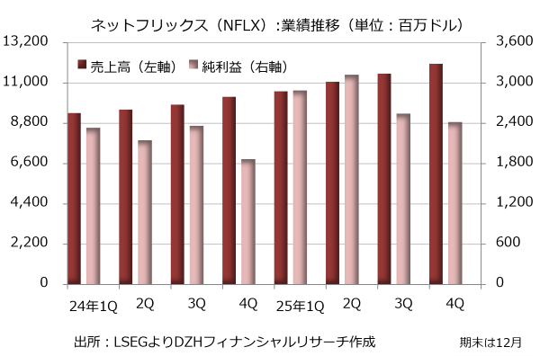 ネットフリックス、26年1-3月期は2桁の増収増益を予想