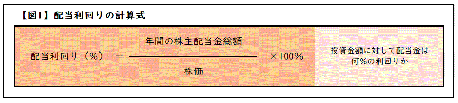 配当利回りとは、「投資金額に対して、どれだけの配当金が受け取れるか」を示した指標です。配当利回りの計算式は【図1】の通りです。