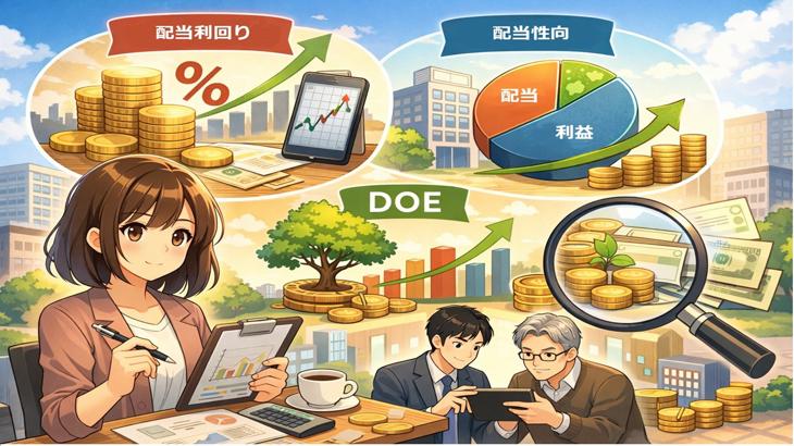配当利回りや配当性向、DOEは、景気や相場の先行きを予測しなくても理解できる指標です。そのため、マクロ分析や相場観に自信がない投資初心者でも取り入れやすいといえます。一度このように整理しておけば、今後も繰り返し使える「基礎知識」として役立ちますよ。