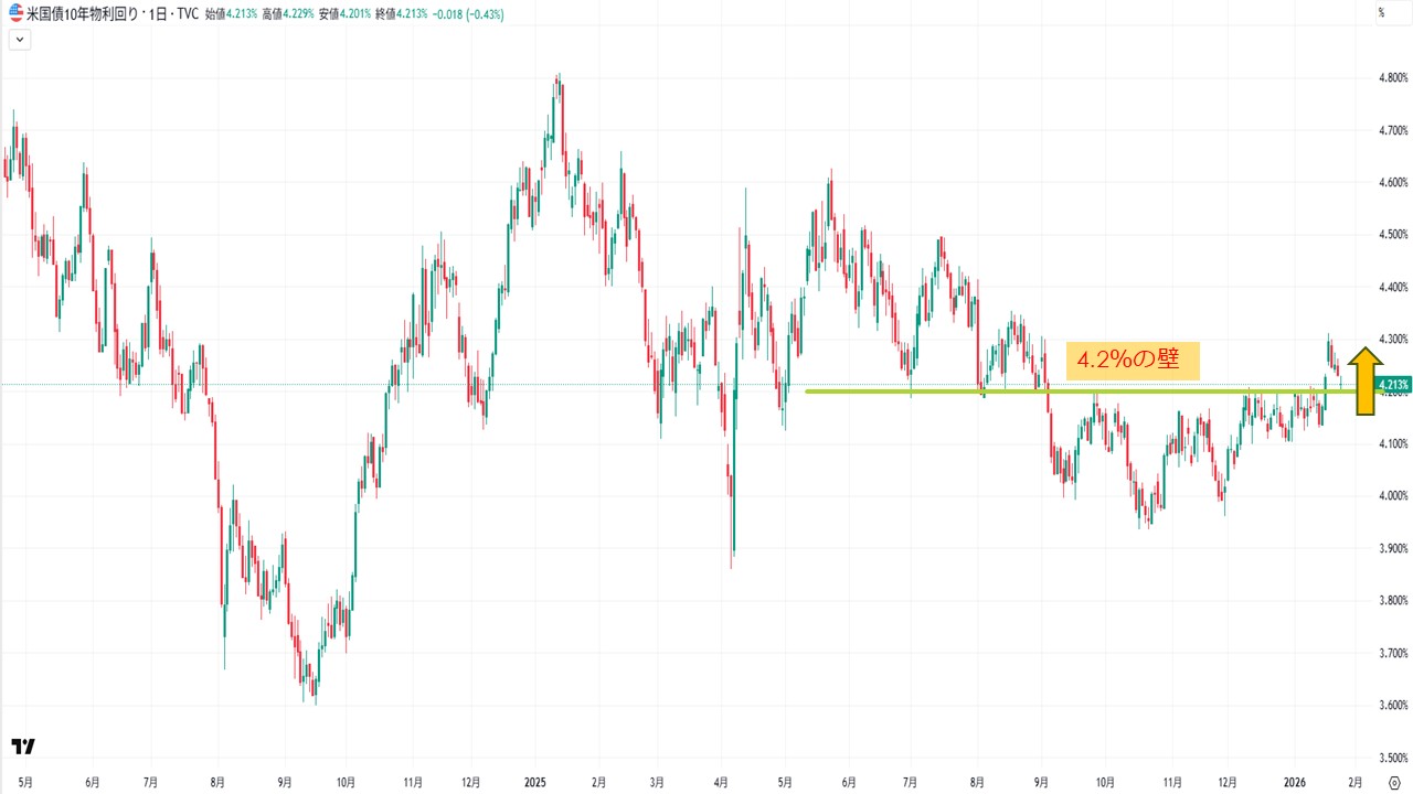 米10年債利回りの4.2%の壁を突破する動きとなっています!!