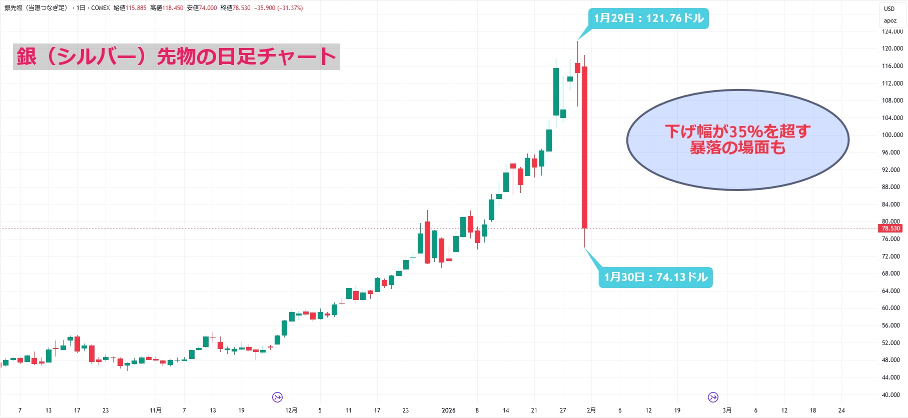 なお、次期FRB議長に指名されたウォーシュ氏が「タカ派」色との評価から、金融市場では米株安とドル高、金(ゴールド)や銀(シルバー)など金属相場の下落が進みました。30日のNY市場ではダウ平均が一時610ドル超下落したほか、主要通貨に対するドルの値動きを示すドルインデックスは97.15まで上昇。NY商品取引所(COMEX)で金先物は一時12%超急落、銀先物は35%超暴落する場面がありました。