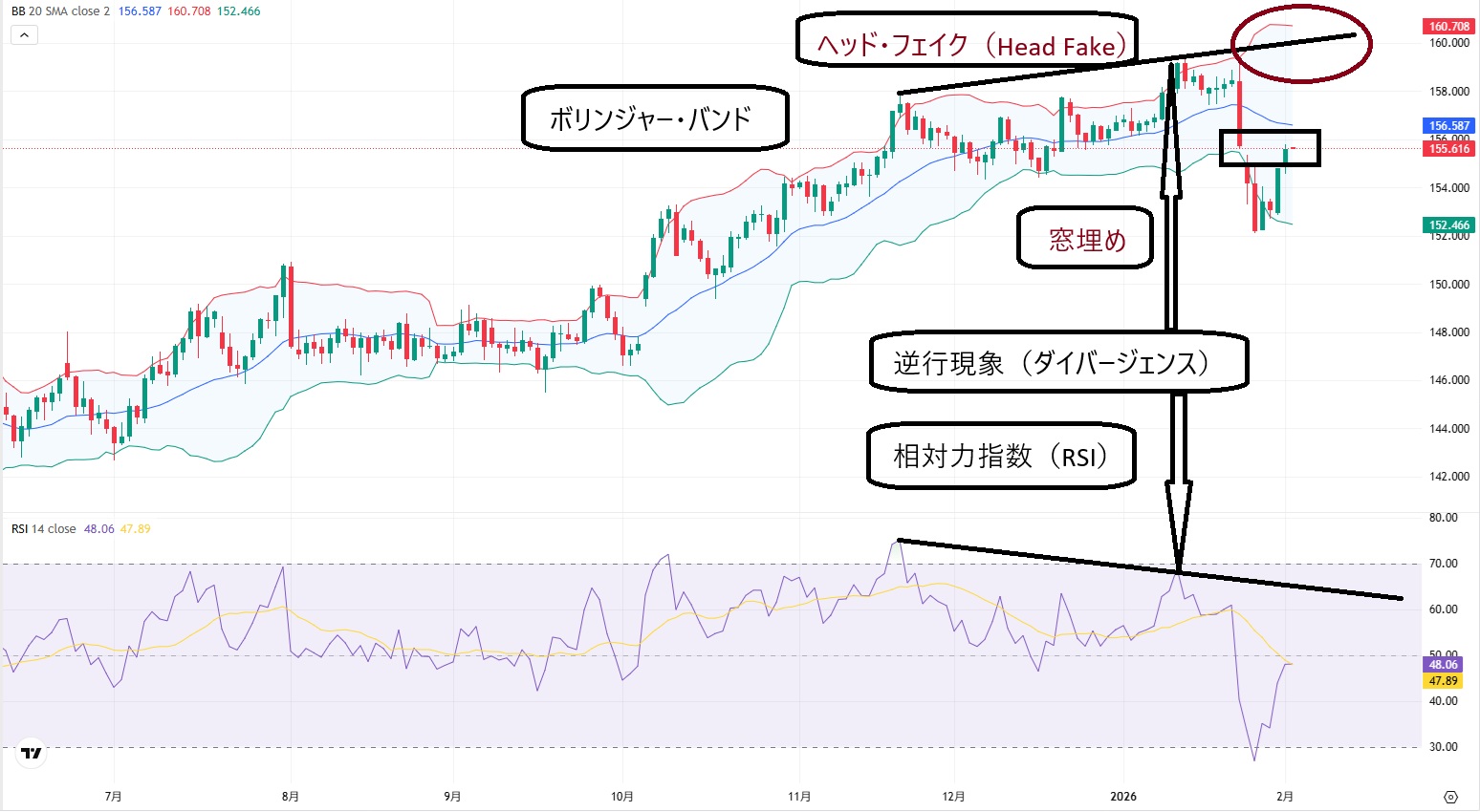 また、ボリンジャー・バンドでも、ヘッド・フェイク(Head Fake)の出現が売りシグナルになっています。