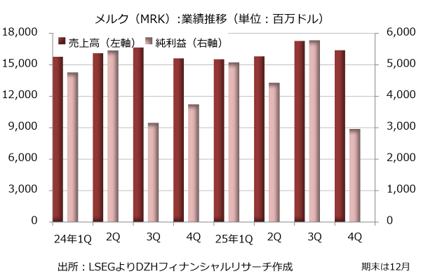 2025年12月通期決算は売上高が前年比1%増の650億1100万ドル、純利益が7%増の182億5400万ドル、非GAAPのEPSが17%増の8.98ドルです。やはり「キイトルーダ」の販売額が7%増の316億8000万ドルとけん引しています。