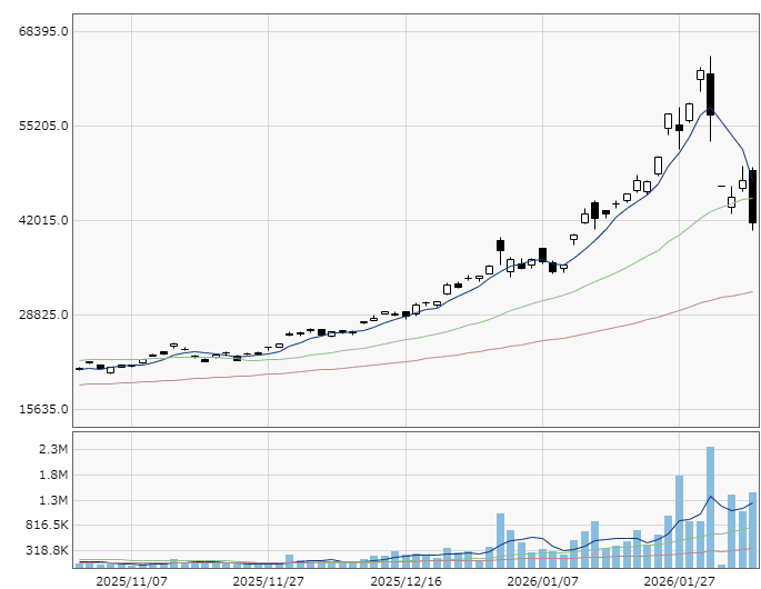 シルバーは宝飾向けのみならず、産業用途として太陽光発電やAIデータセンター向けなどでも必要とされます。そのため、中国輸出規制をきっかけに需給がひっ迫するとの見方から、手元に銀地金を確保しようとする企業の買いが集中しました。そして、その値上がりを見た投機勢も買いを入れたことで、一気に上昇ペースが加速したものと思われます。