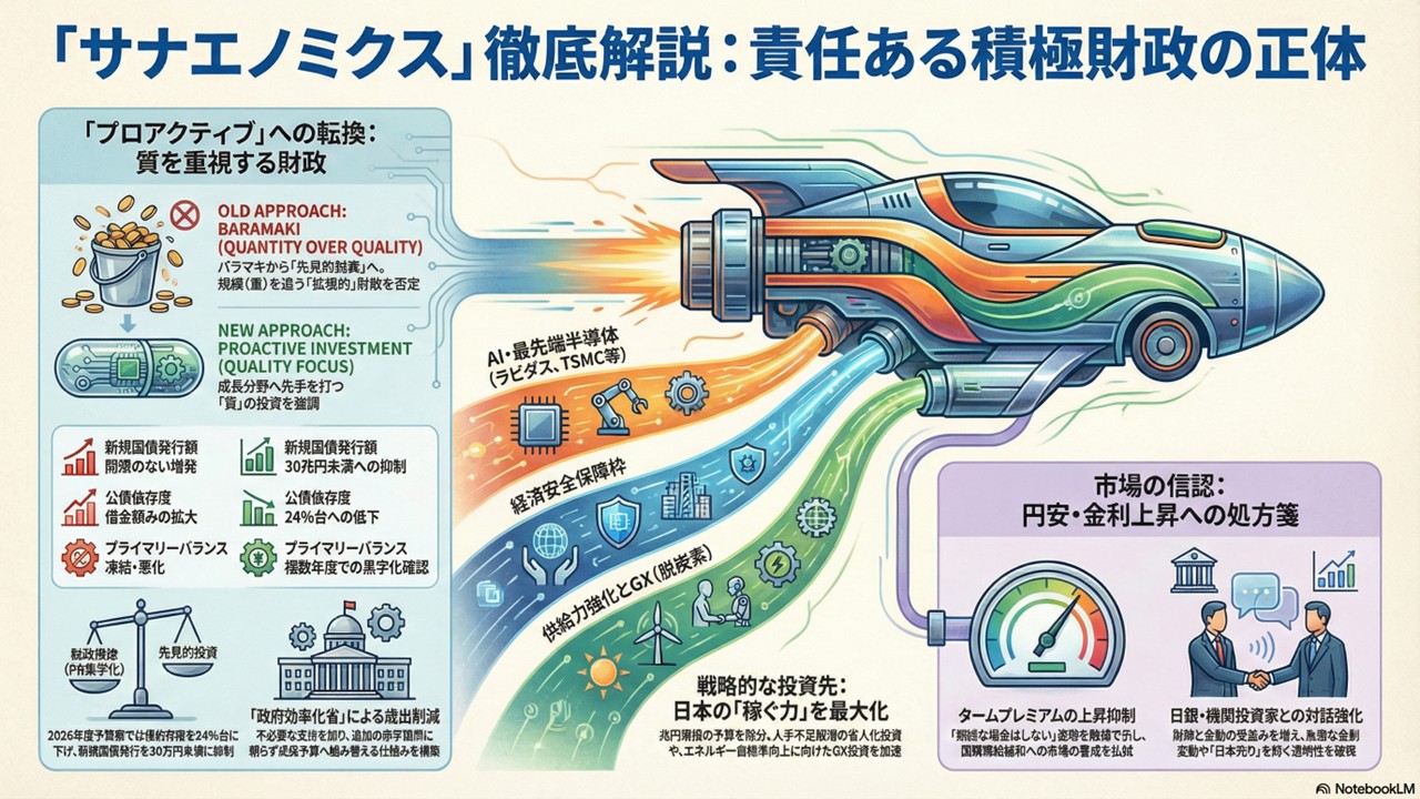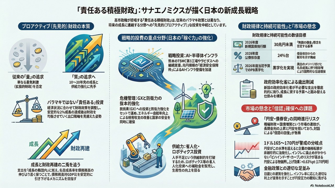 投資分野: 10年、20年先を見越し、AI・半導体、経済安全保障、GX(脱炭素)、省人化投資、防衛など、将来の「稼ぐ力」に直結する分野へ先手を打って資金を投入