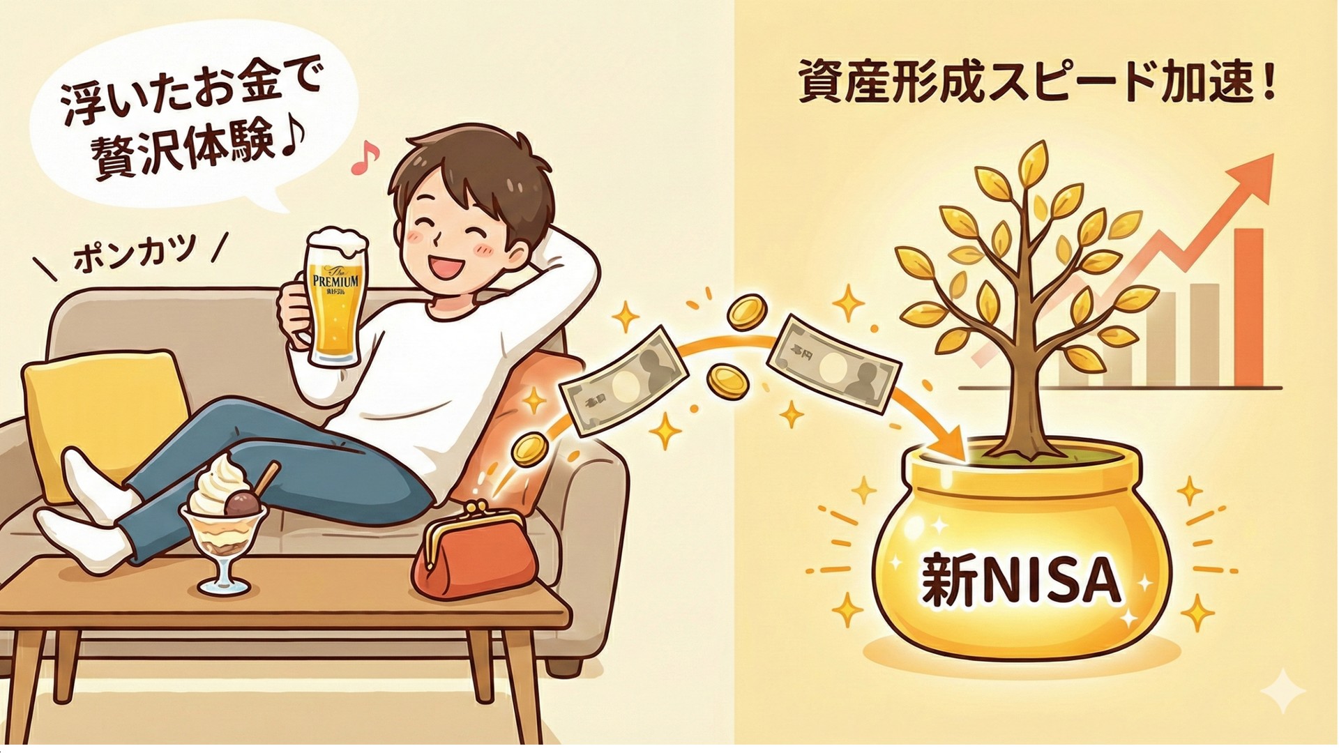 多くの人が「1ポイント=1円」で浪費している間に、金融リテラシーの高い層は「1ポイント=3円」の価値でビールや嗜好品を手に入れ、浮いたお金を新NISAに回しています。