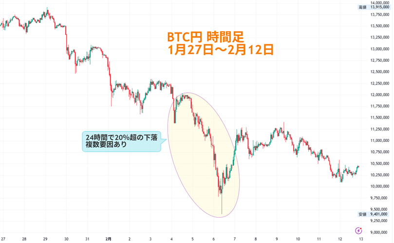 BTC円は5日夜に1100万円を割り込むと、6日の早朝には2024年10月(米大統領選でトランプ優勢が伝わっていた時期)以来の1000万円割れを記録しました。流動性の薄いなか、ロングの投げを巻き込みながら940万円台まで下落幅を広げました。