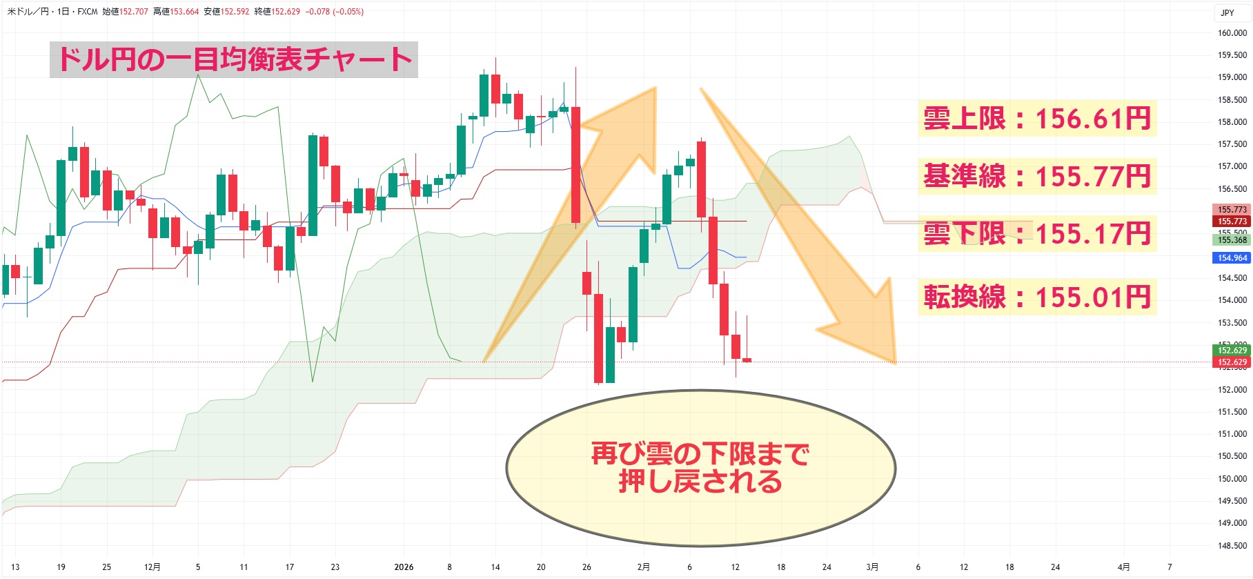 ドル円の一目均衡表チャートを見ると